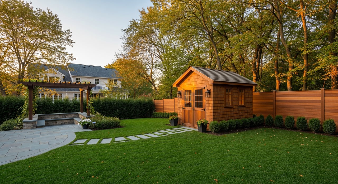 • a house with a well-maintained lawn and flower garden.